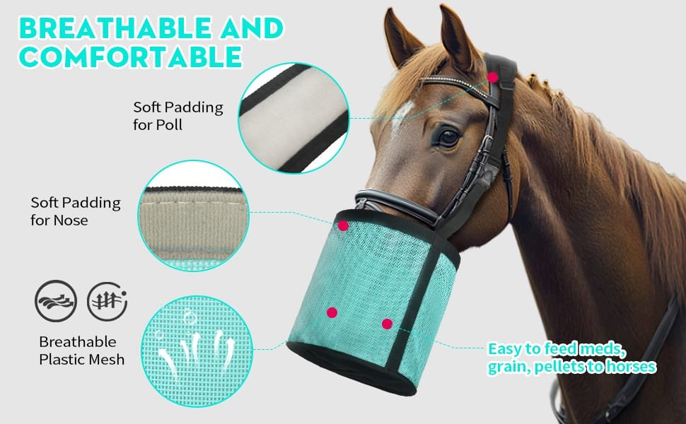 Oahelake feed bags for horses are beneficial for feeding grains, Meds and supplements, Perfect for messy, pusty, senior, underweight, teeth floated eater, etc.