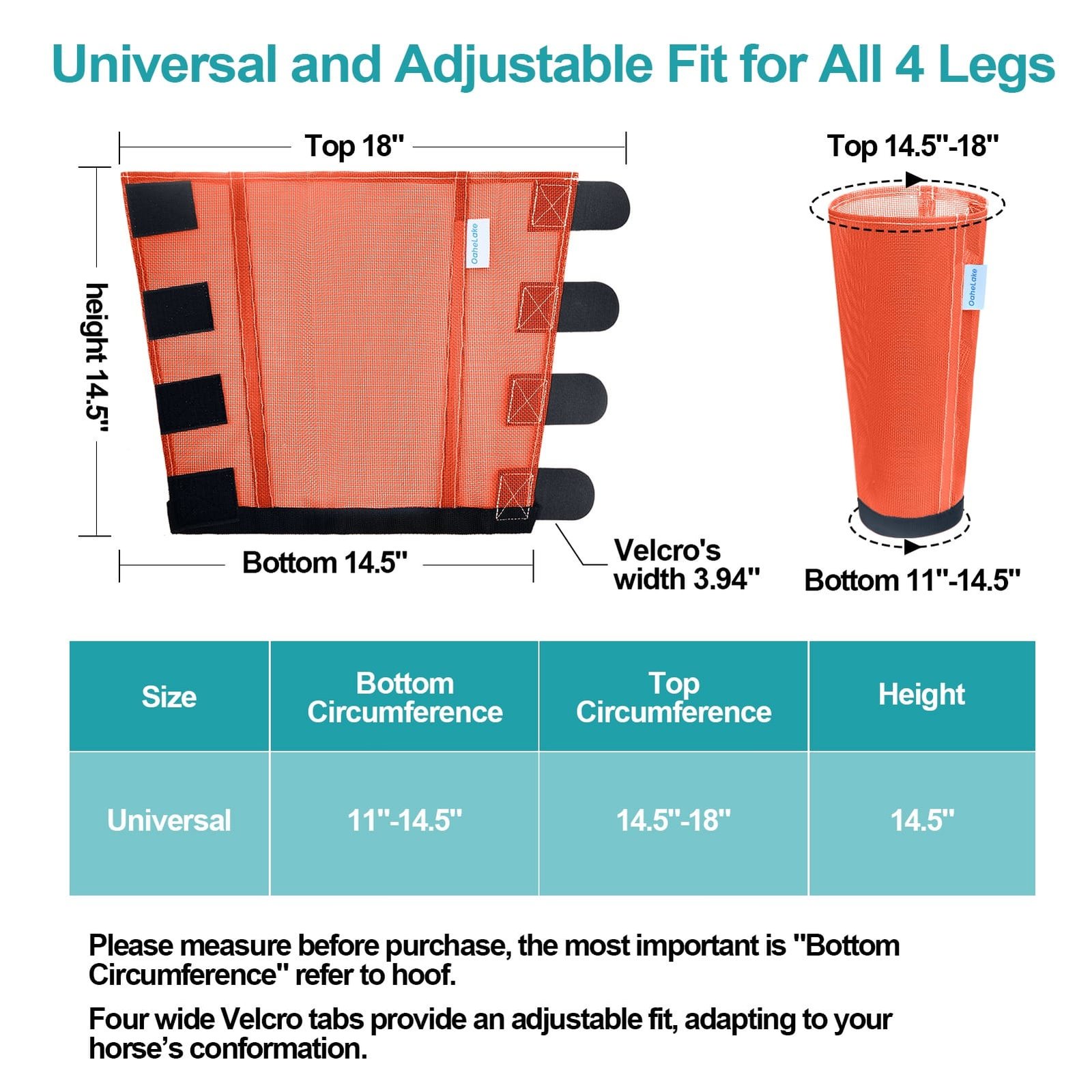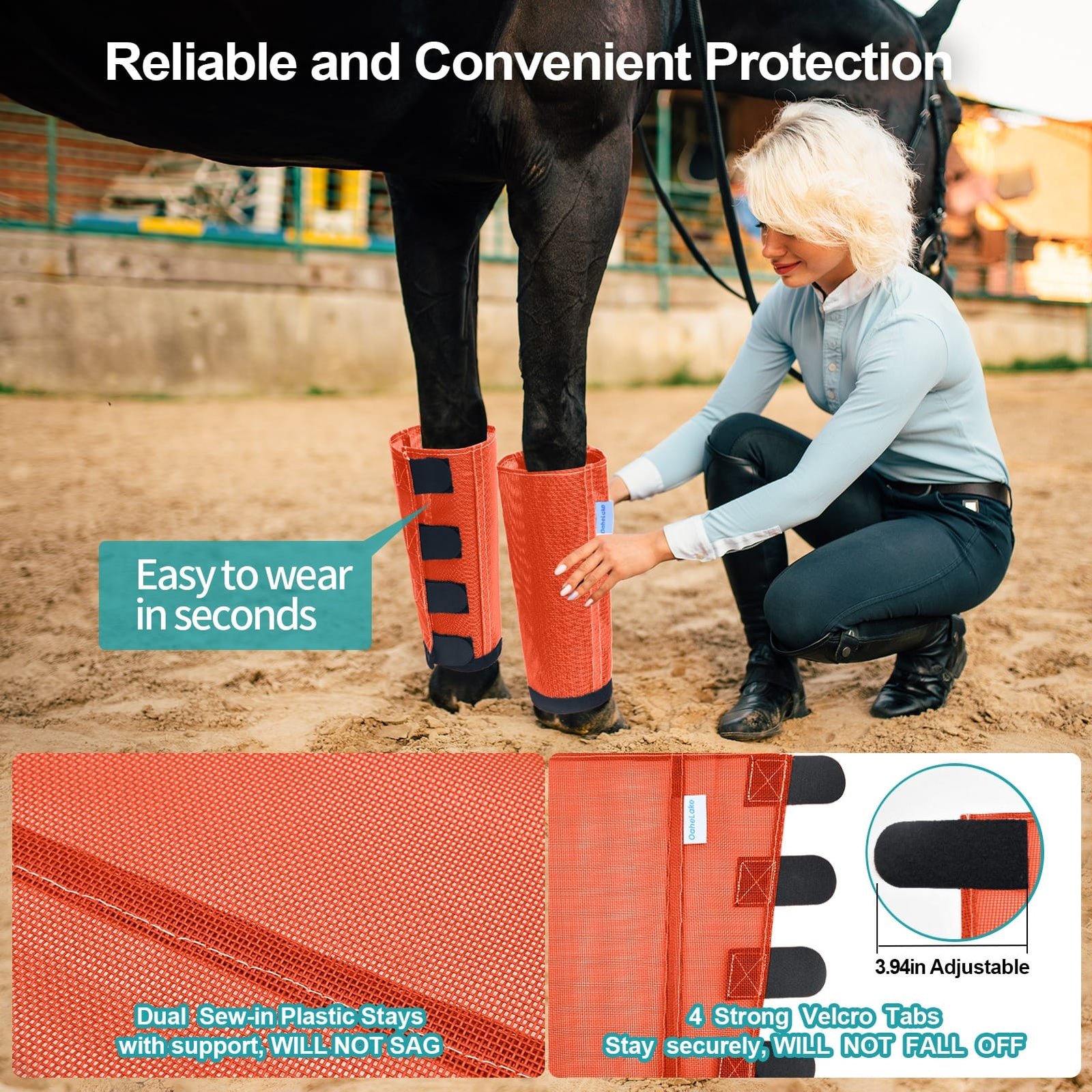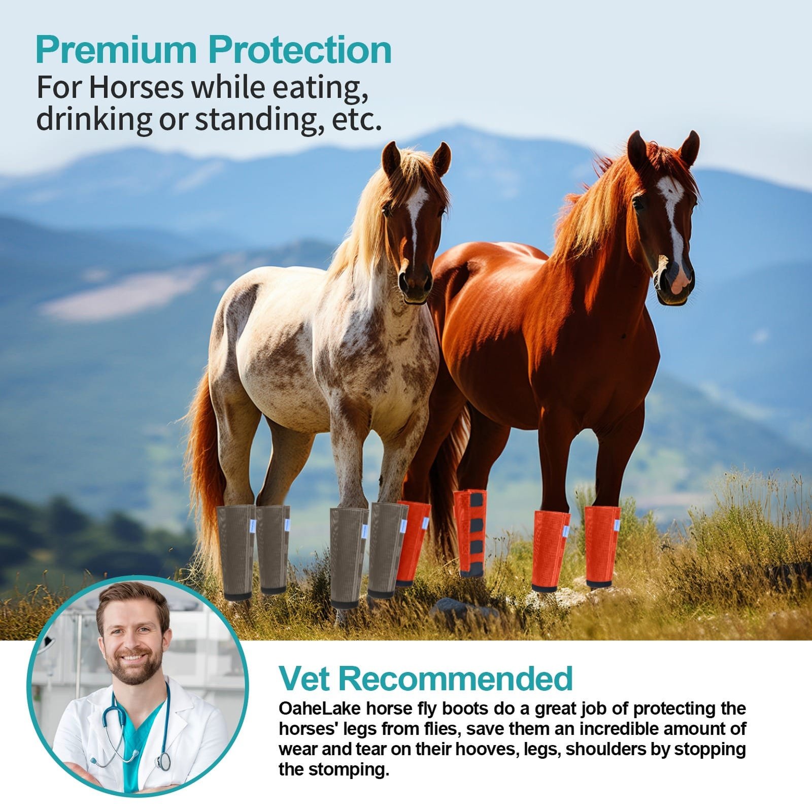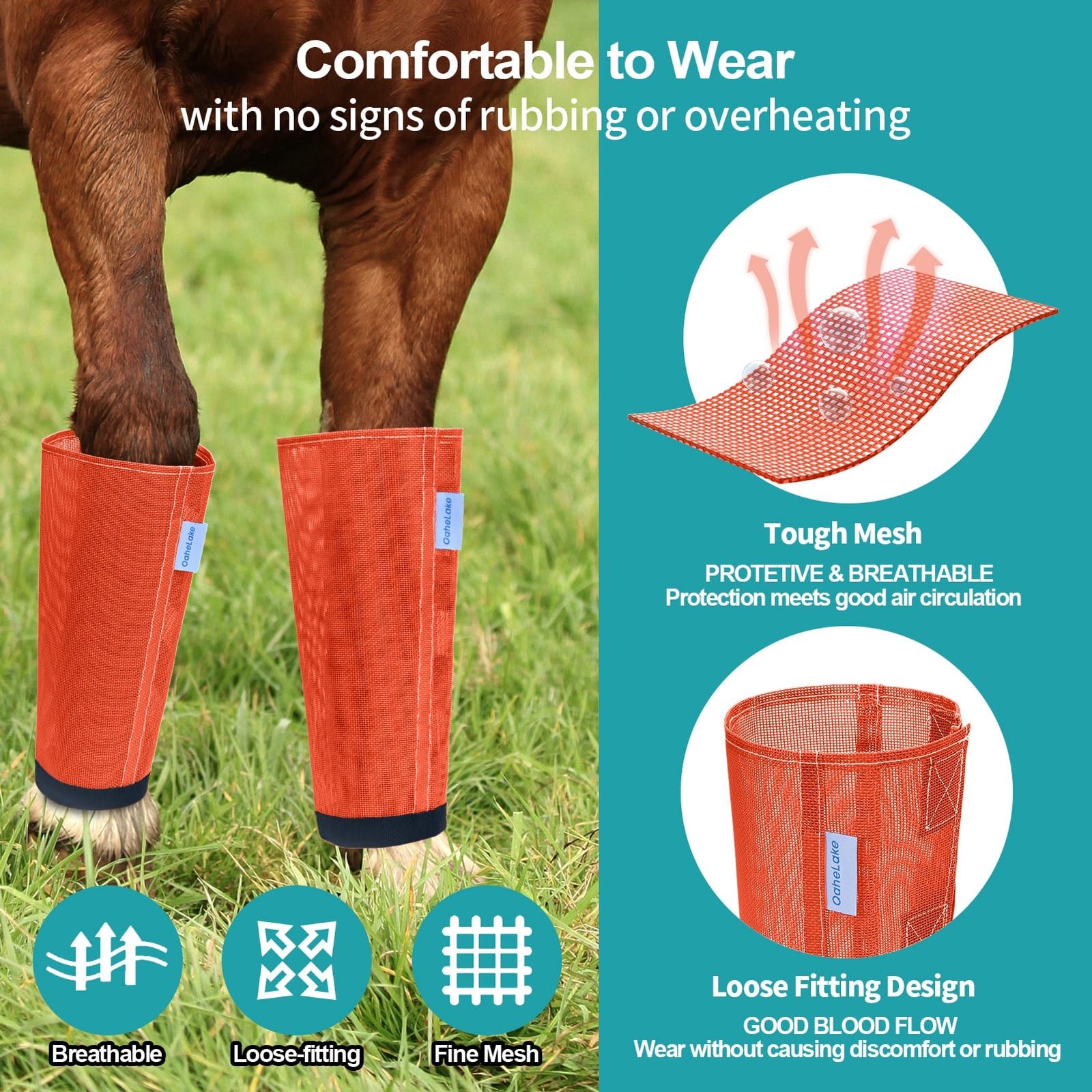OaheLake Mesh Fly Boots For Horses are the perfect protection against flies. The lightweight plastic mesh keep the flies off while letting airflow circulate freely, Vet-trusted design prevent rubs and overheating, all four legs stays protected by OaheLake boots season after season.