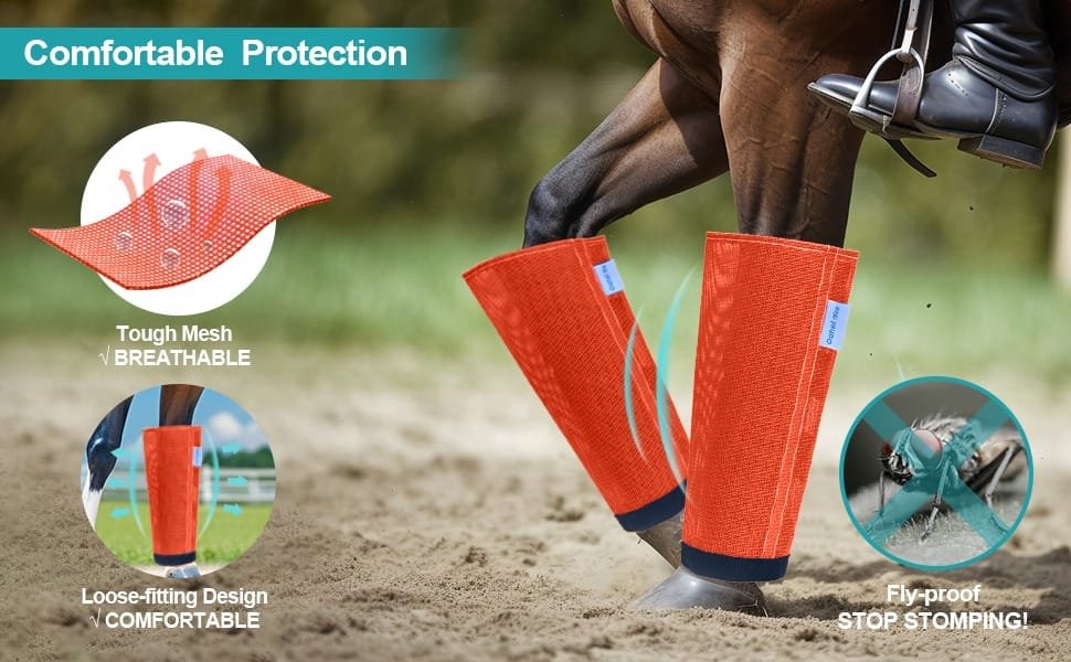 - Sturdy mesh provide protection for horse against flies biting, while allows vital air circulation without being too constricting or hot, horse leg covers breathable lightweight boots are perfect for horses during fly season, especially during hot summer.