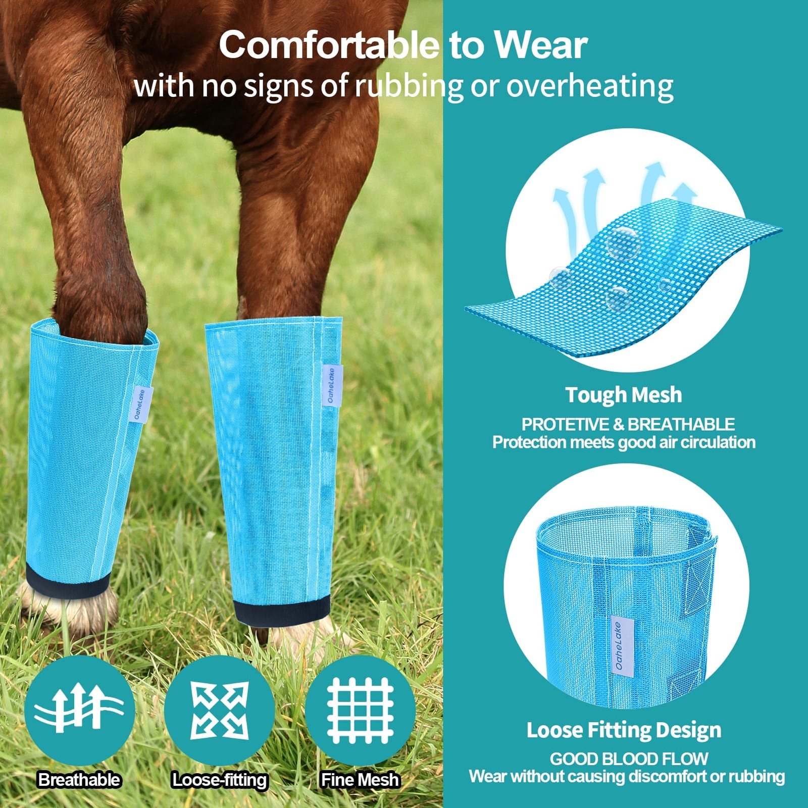 • VET-TRUSTED FOR REDUCE STOMPING: OaheLake Mesh Horse Fly Boots for horses are ideal for offering durability and reliable protection for horses’ legs against flies annoying, ensure to reduce constant stressful stomping. Highly recommend by Vet and Farrier.