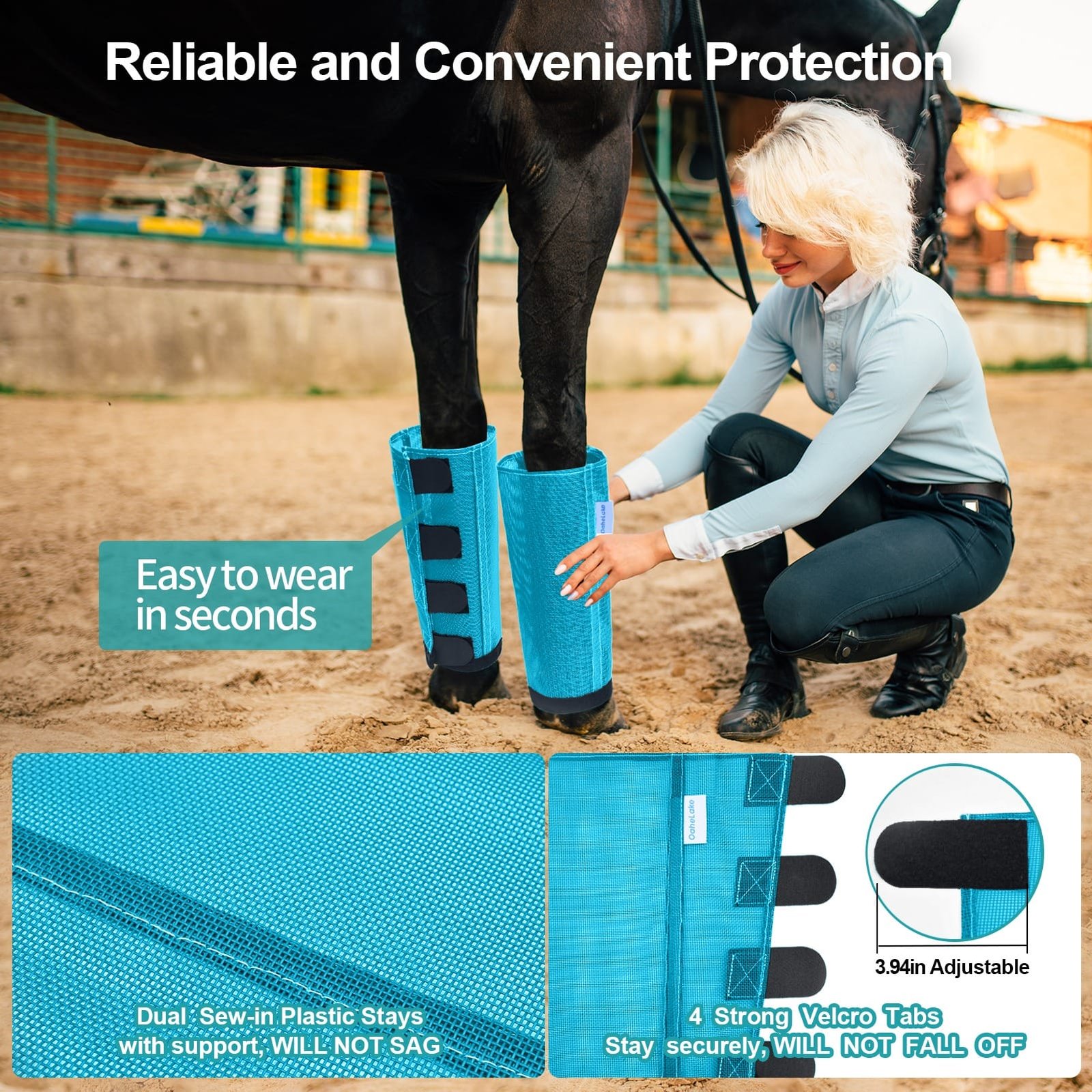 OaheLake Mesh Horse Fly Boots are the perfect protection against flies. The lightweight plastic mesh keep the flies off while letting airflow circulate freely, Vet-trusted design prevent rubs and overheating, all four legs stays protected by OaheLake boots season after season.